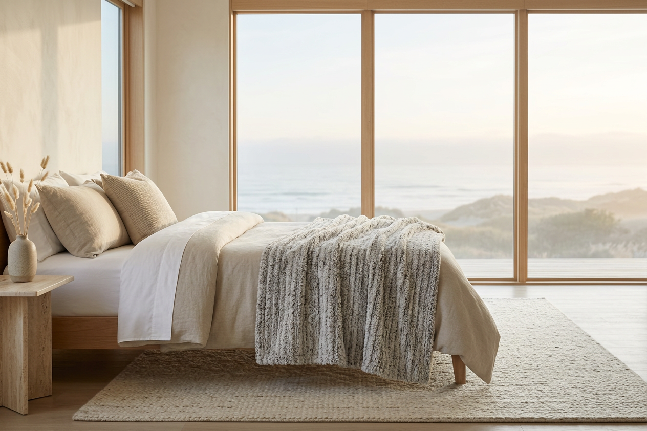 We favor neutral palettes, structured silhouettes, and tactile materials that invite warmth without excess. Every textile is created with careful attention to form, function, and longevity.